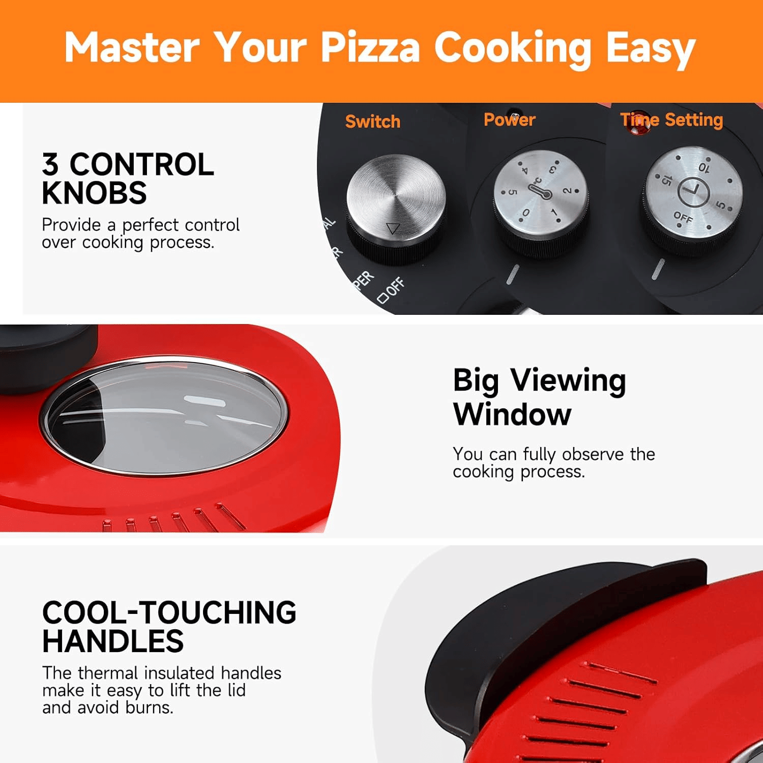 PSQL25RB 1600W Portable Pizza Machine 16 inch Electric Pizza Oven 420 Pizza oven 4 minute Pizza Knob Control Control - PSQL25R