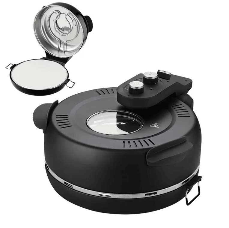 ★ [Cool Touch Handle and Non-Slip Bottom]The Davivy Pizza Oven has two cool touch handles on the lid to keep it safe when it is opened and closed, as the surface of the pizza oven may get hot during the rapid heating process. There are two handles attached to each plate, so that they can be easily moved or rotated during cooking. The non-slip bottom design, with suction cups installed on the feet, ensures stability and safety.