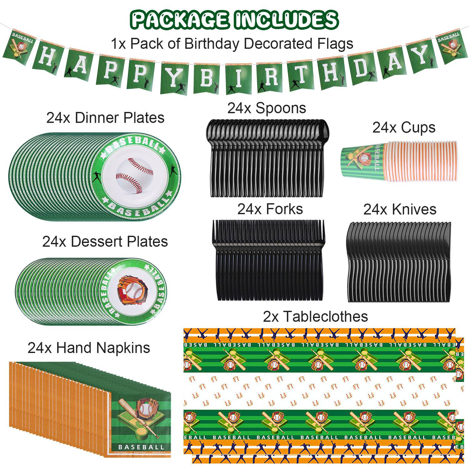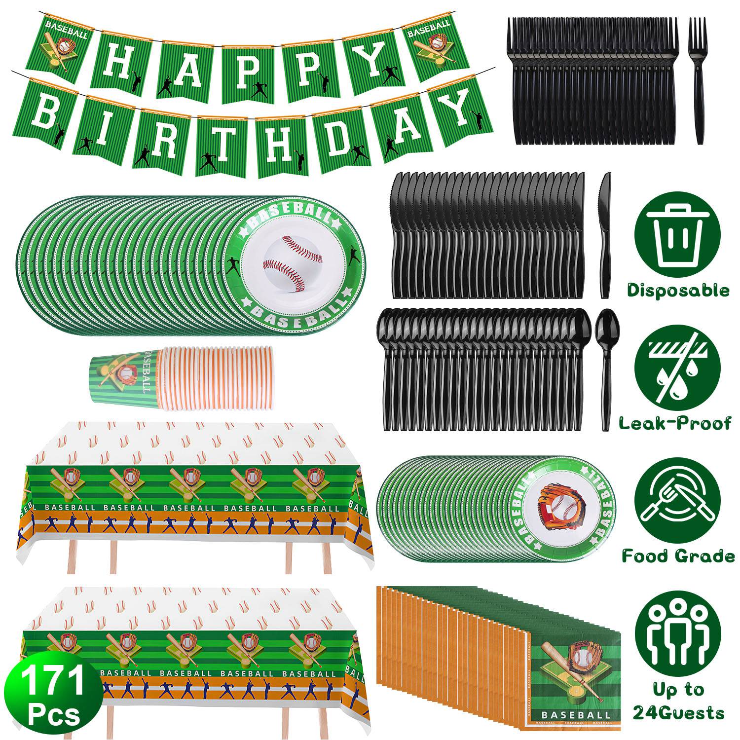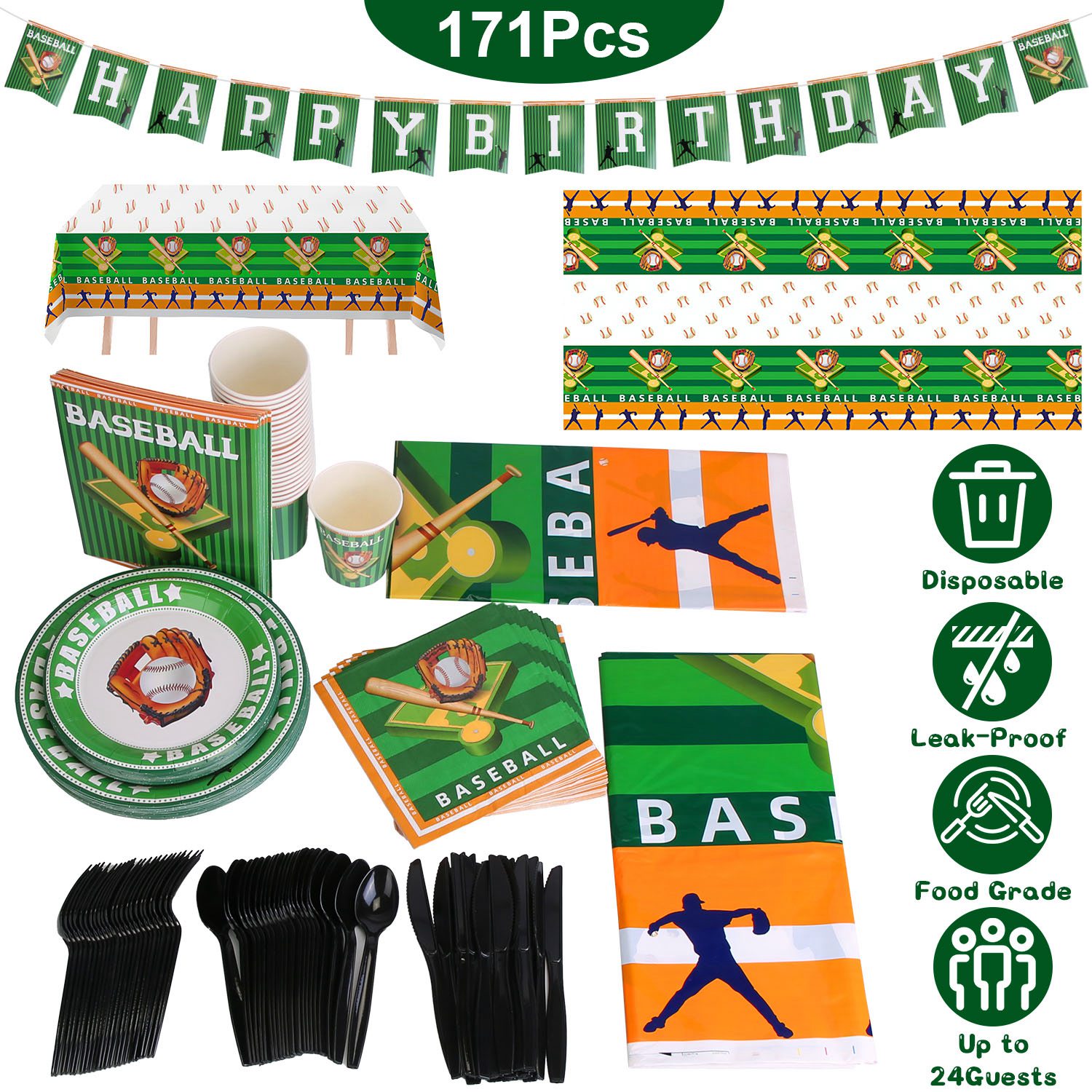 171Pcs Baseball Party Supplies Kit Baseball Birthday Party Disposable Dinnerware Set Baseball Themed Party Tableware Decorations Cups Plates Napkins Utensils