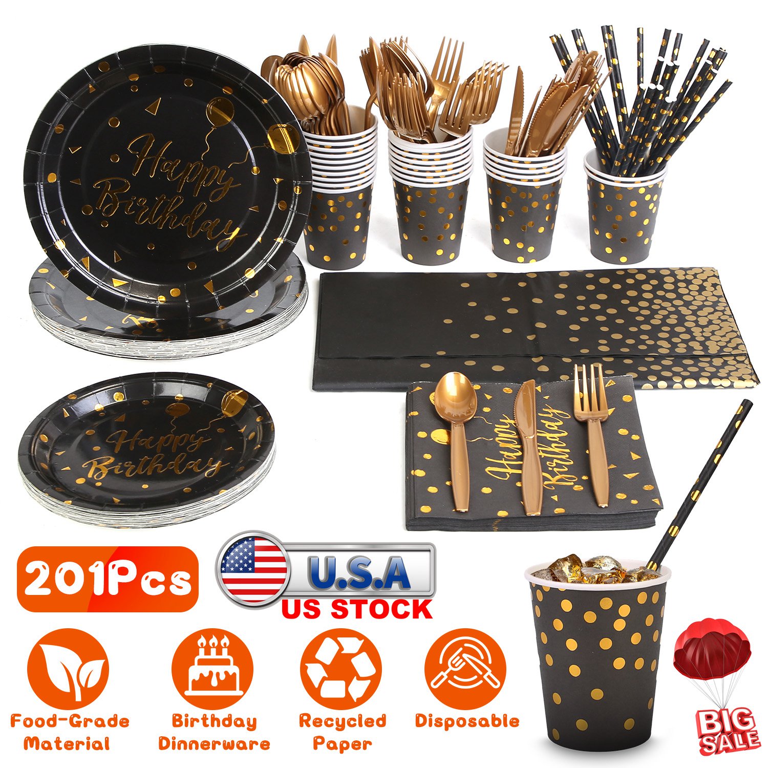 Product Type: Happy Birthday Black And Gold Disposable Dinnerware Set