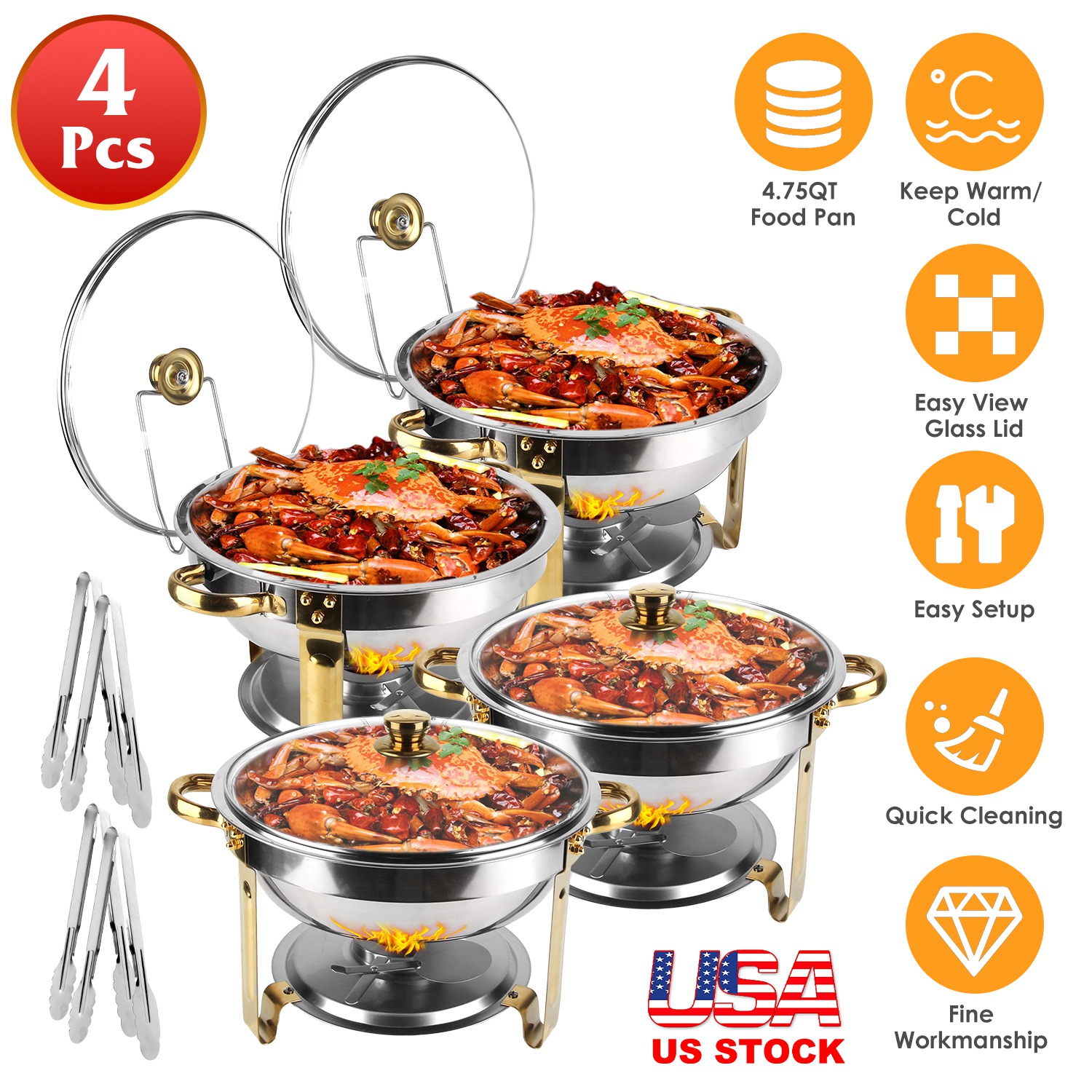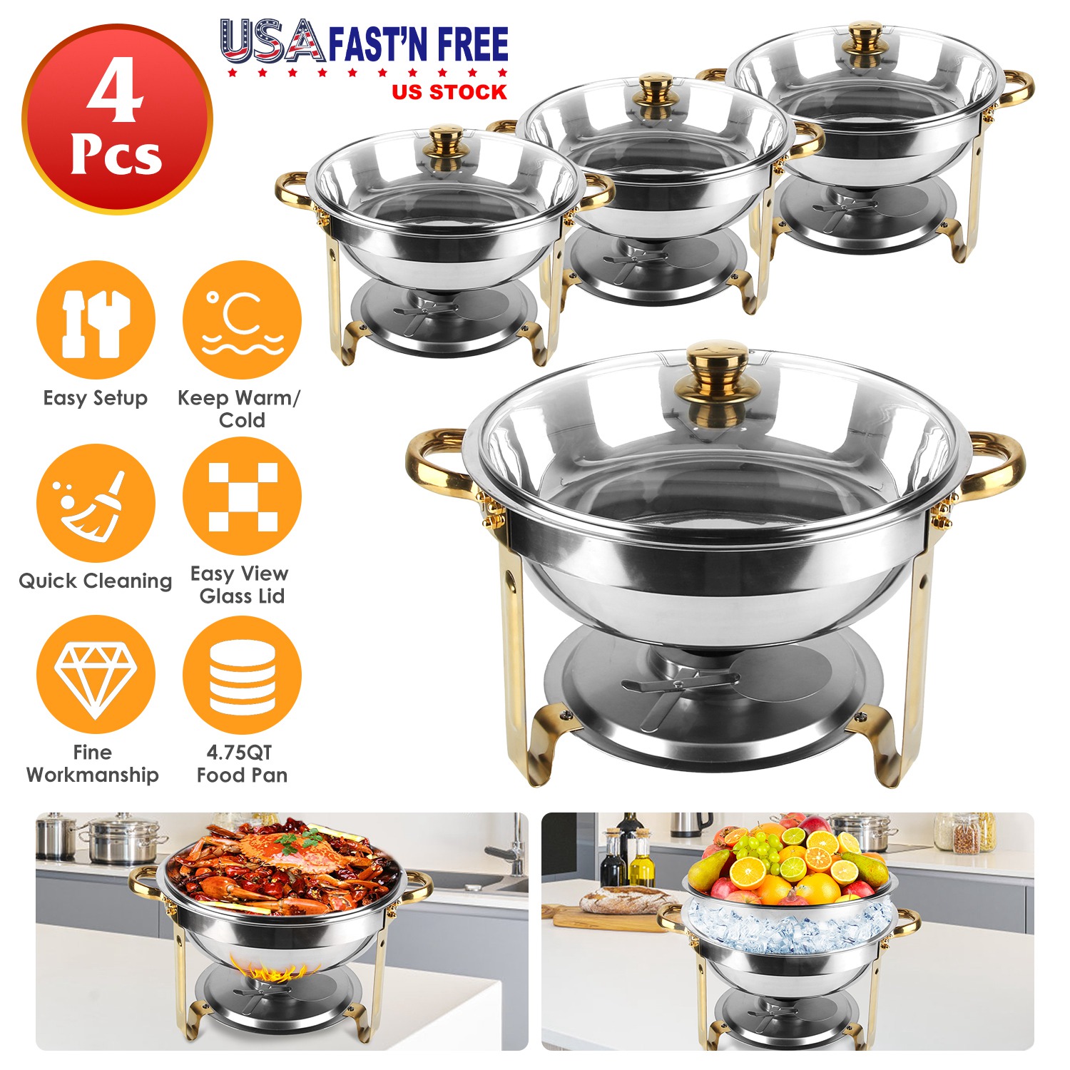 4Pcs Chafing Dish Buffet Set 4.76QT Round Buffet Servers Food Warmer Stainless Steel Catering Chafer with Glass Lid for Warming Cooling Gatherings Ban