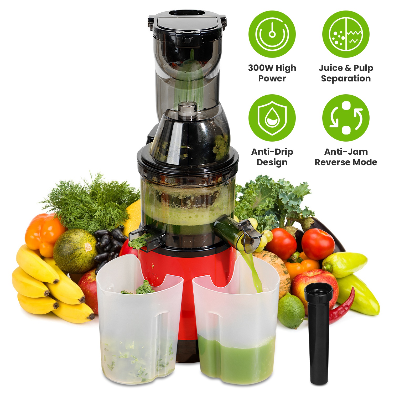 Home > Cold Press Juicer Machine with Reverse Function 2 Containers Cleaning Brush Clear