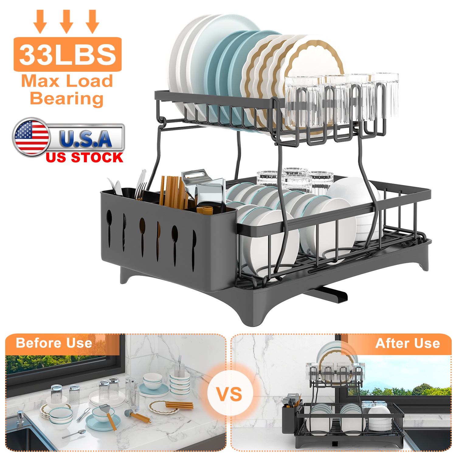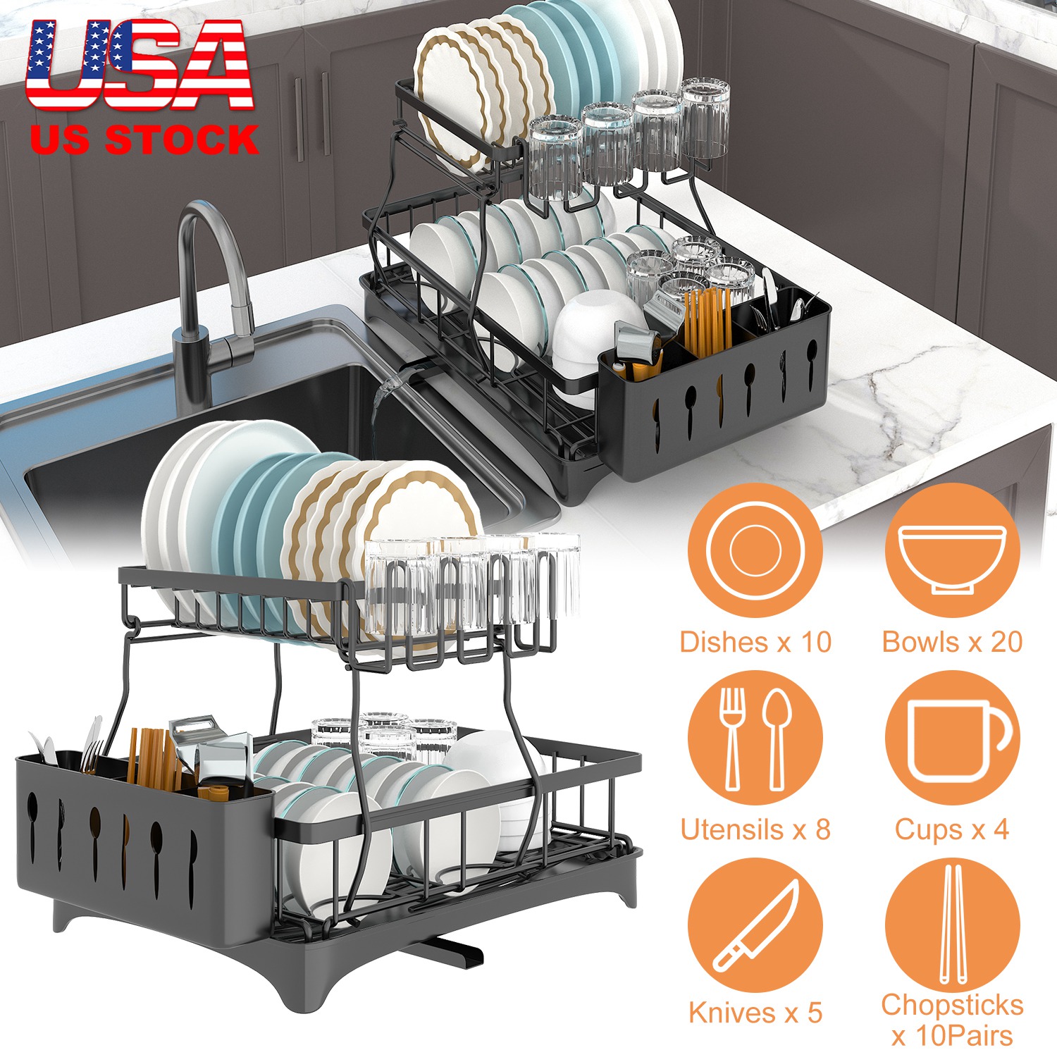 Dish Drying Rack with Drainboard Detachable 2-Tier Dish Rack