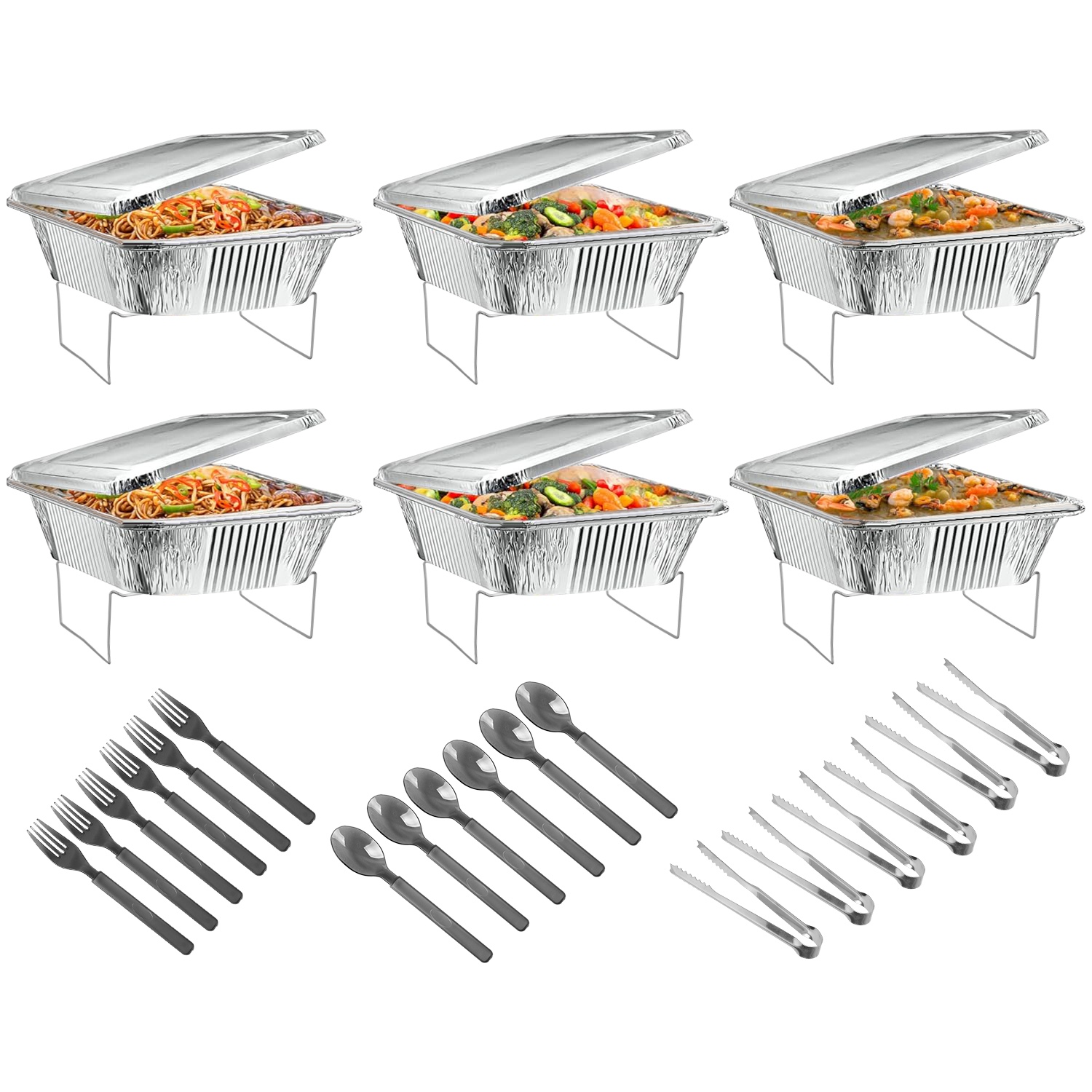 36Pcs Disposable Chafing Dish Buffet Set Food Warmers For Party Buffet Server Catering Supplies With Covers Utensils Half Size Food Pans For Parties