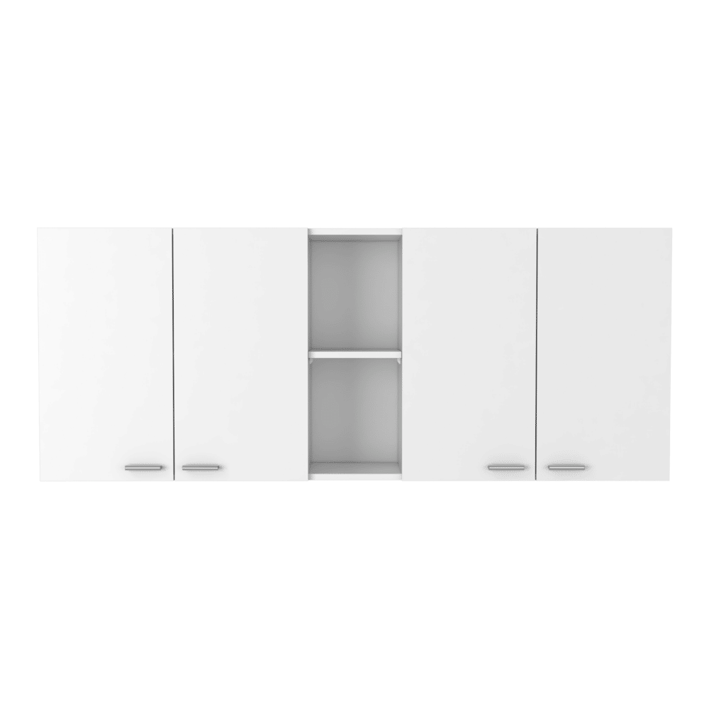 Looking for a kitchen set that will make your kitchen the envy of all your friends and family? Here's the Austin Kitchen Set! This stylish set is designed with an exclusive white-walnut manufactured wood finish, making it a truly unique addition to any home. This set is ideal for anyone who loves to entertain or wants to make a statement in their kitchen. Whether you're looking for a place to enjoy a meal with your family or want to host an intimate gathering, this set will give you everything you need and more. Don't miss out on this must-have kitchen set!This stylish island is perfect for any kitchen, with a large top surface (40,5 "W X 27,5 "D) perfect for meal prep or entertaining. The white-walnut finish is easy to care for and will make your kitchen look its best. The modern style impresses your guests, and the three spacious lower shelves provide plenty of storage space.The Winslow 150" Wall Cabinet is simply exquisite. It's practical, fits easily on any wall, and is easy to assemble. It features two double-door cabinets - one with an internal shelf and the other including two excellent racks, ideal for your dishes or glasses. And in the middle of the cabinet is an open shelf that adds a unique touch (8,81"W X 10,90"H). Such a perfect way to add organization and elegance to your home.Dimensions:Furniture 1, Brooklyn Kitchen IslandWidth: 40,5'Height: 35,4'Depth: 27,5'Furniture 2, Winslow 150" Wall CabinetWidth: 59,05'Height: 23,62'Depth: 14,40'