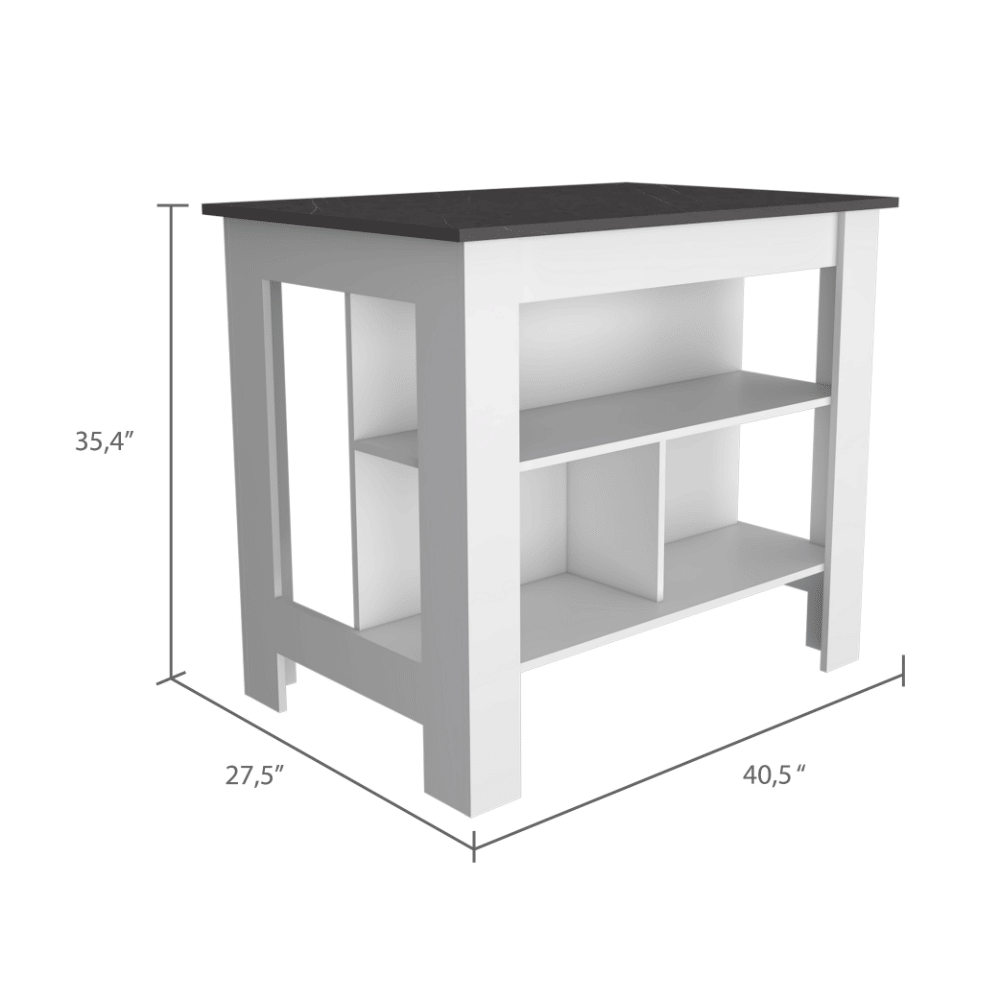 1.This striking island includes a large top surface (40,5"W X 27,5"D)that is ideal for all your favorite preparations, from cooking to entertaining