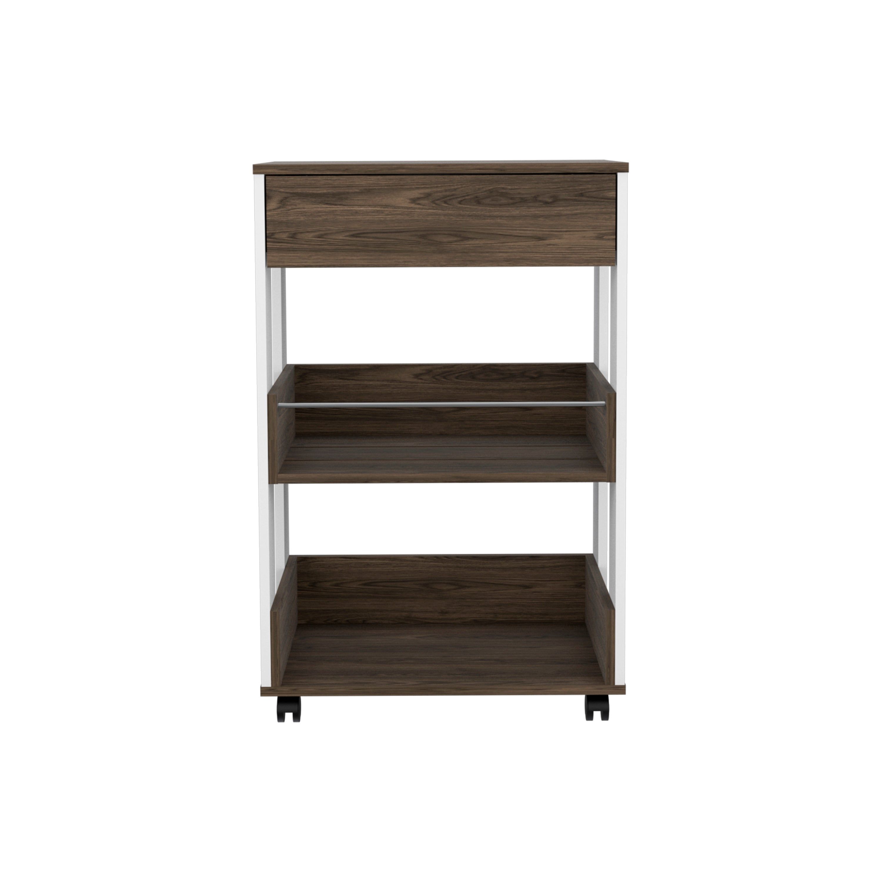 Dundee Kitchen Cart, One Drawer, Two Open Shelves - White / Dark Walnut