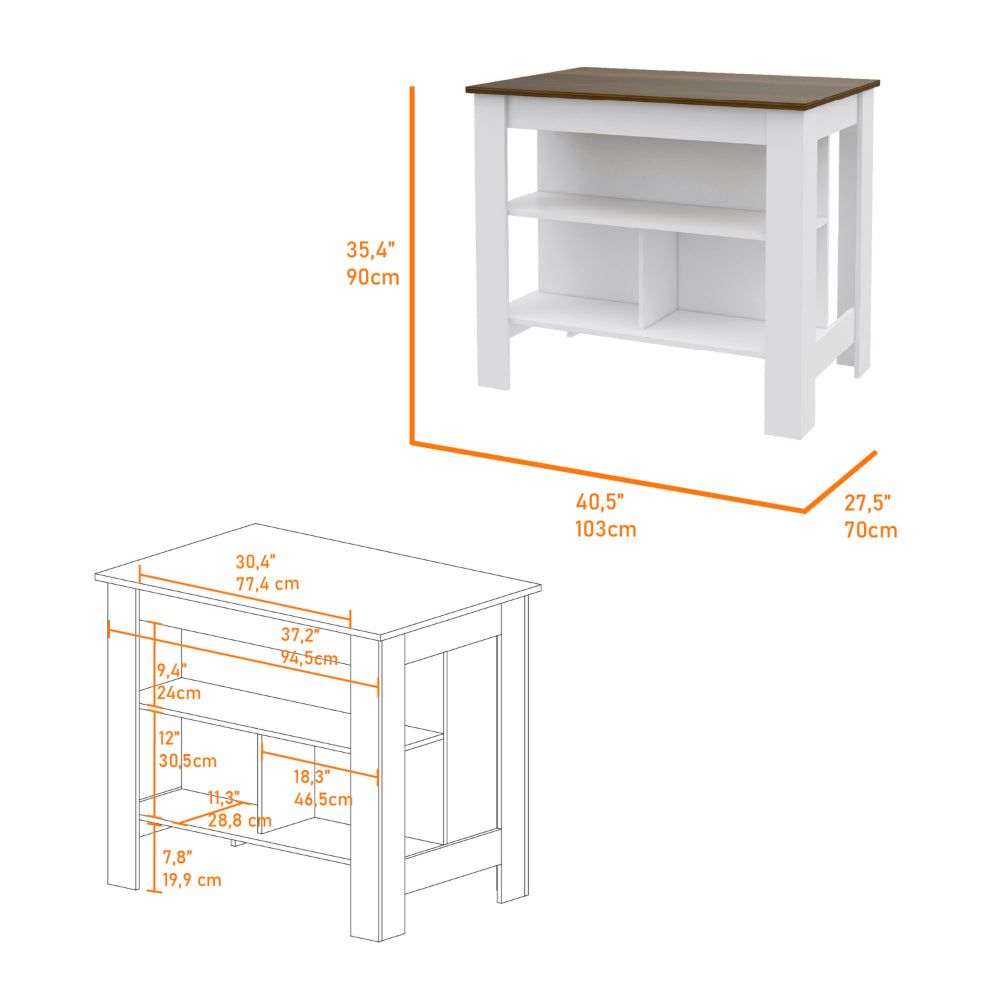 1.This striking island includes a large top surface (40,5"W X 27,5"D)that is ideal for all your favorite preparations, from cooking to entertaining